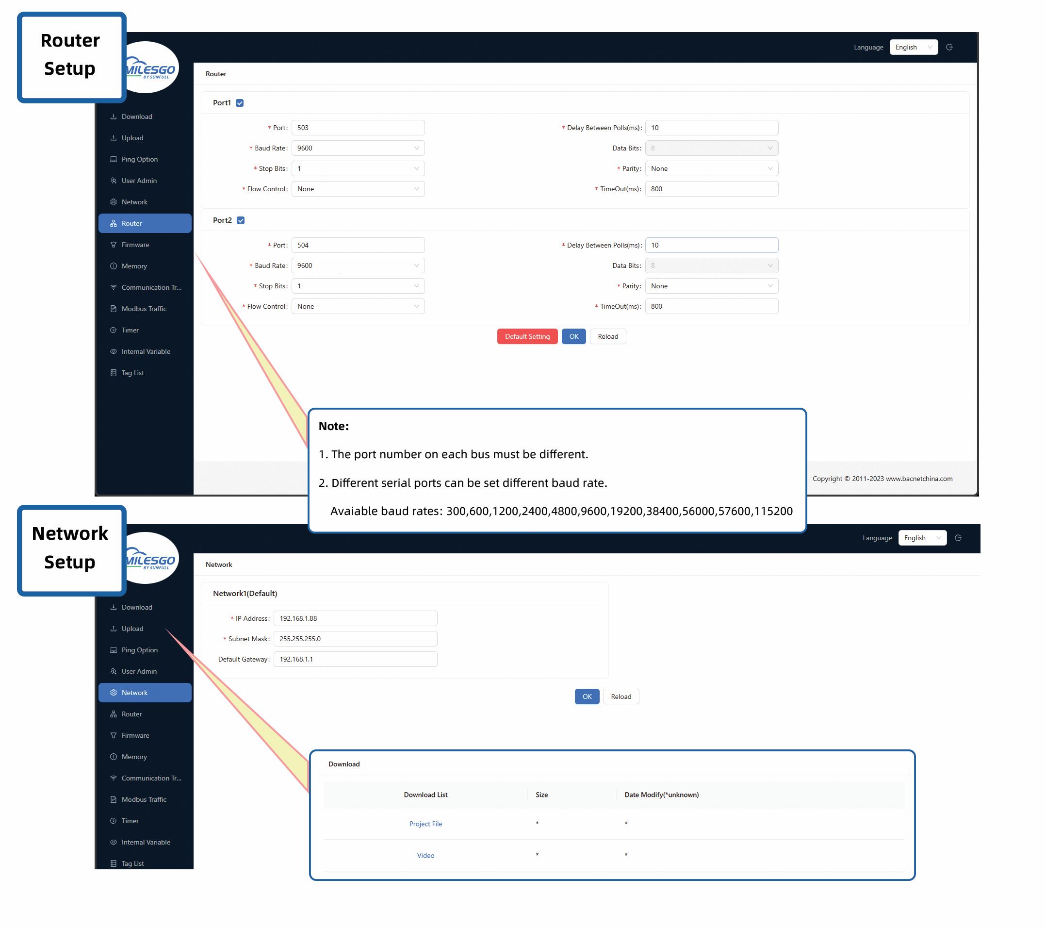 Configuration Software X2Modbus(Username:Sunfull-NAS Password:Admin123456)