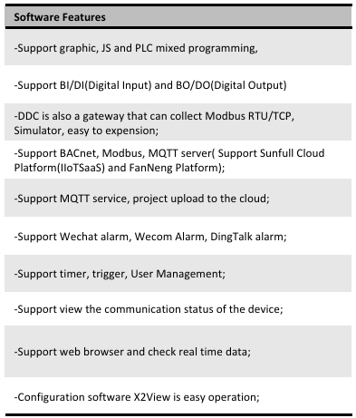 DDC Module DDC1001-8400 (1 ethernet, 1 serial port, 8DI, 4DO, dynamically supports 256 points) only supports collecting Modbus RTU/TCP and Simulator driver, and convert it to BACnet IP and Modbus TCP servers simultaneously. Using X2View software to make the project(can¡¯t make configuration pages). User can configure the project according to the communication protocol document of on-site Modbus RTU/TCP device , and convert it to a standard BACnet IP and Modbus TCP server. After monitoring successfully on the local monitor mode, upload the project file to DDC module to access the data of on-site device (Note: The decimal address of the collection end starts from 1 (Base1), and the hexadecimal address starts from 0 (Base0); The Modbus register base address of the transfer end starts from 1 (Base1)