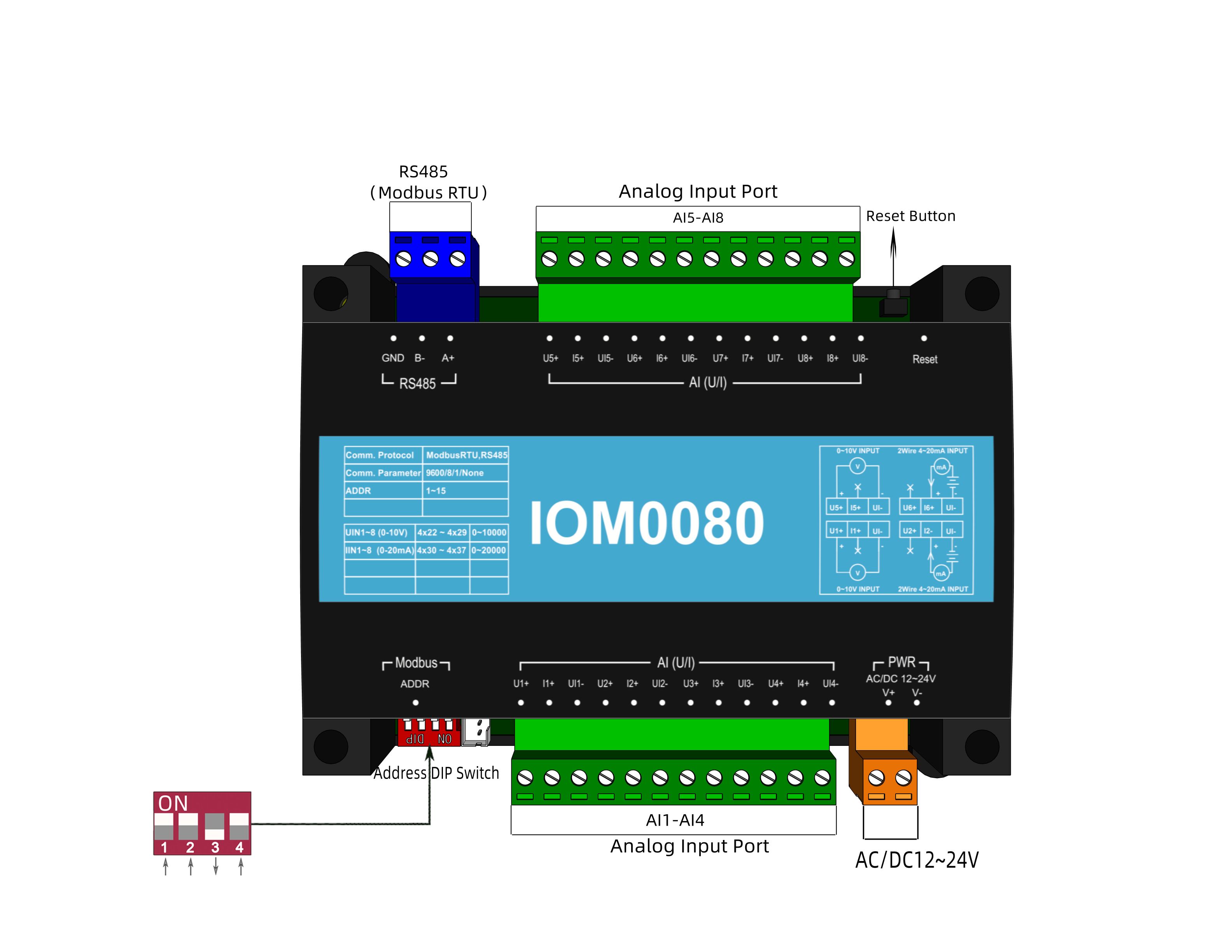 Analog Input  Supports 0-10V, 0-20mA (AD 14bit)