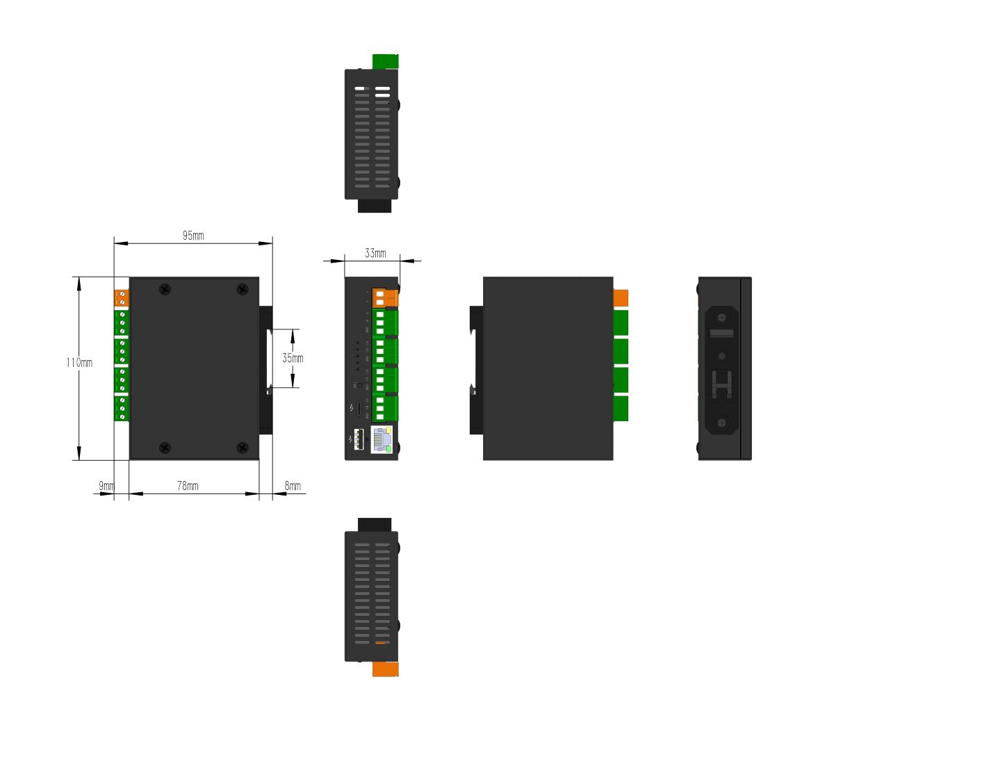 接口:1个网口,4个RS485(电磁隔离) 温度:-20℃~+70℃(工作) -40℃~+85℃(储运)